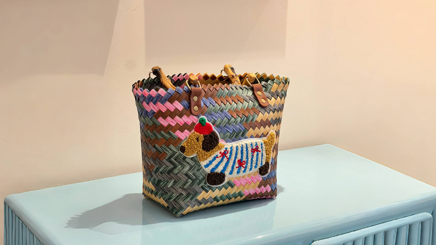 Woven Dog Charm Tote Bag