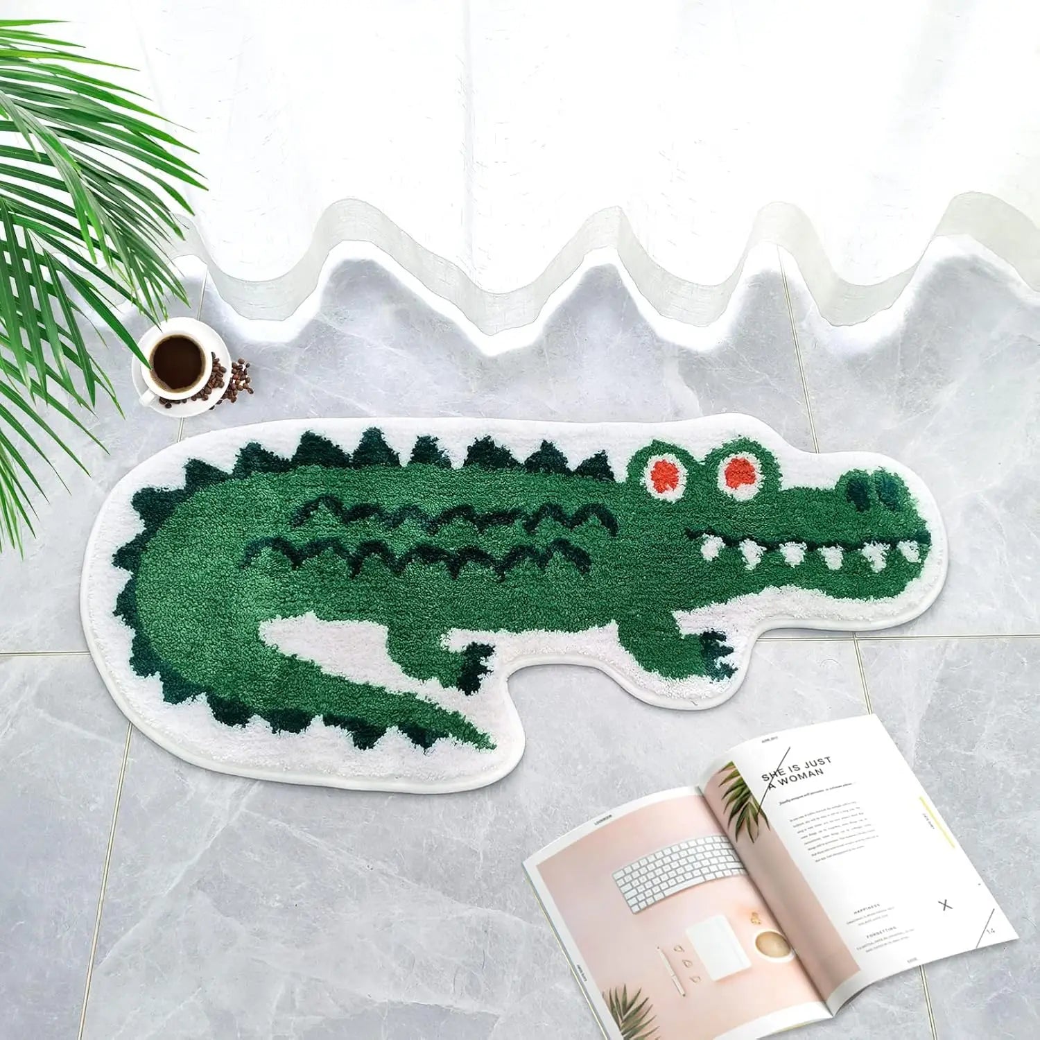 Features a fun animal-style crocodile in vivid colors.