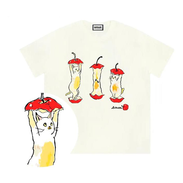 - Features whimsical cats merged with apple cores—an artistic, eye-catching twist.