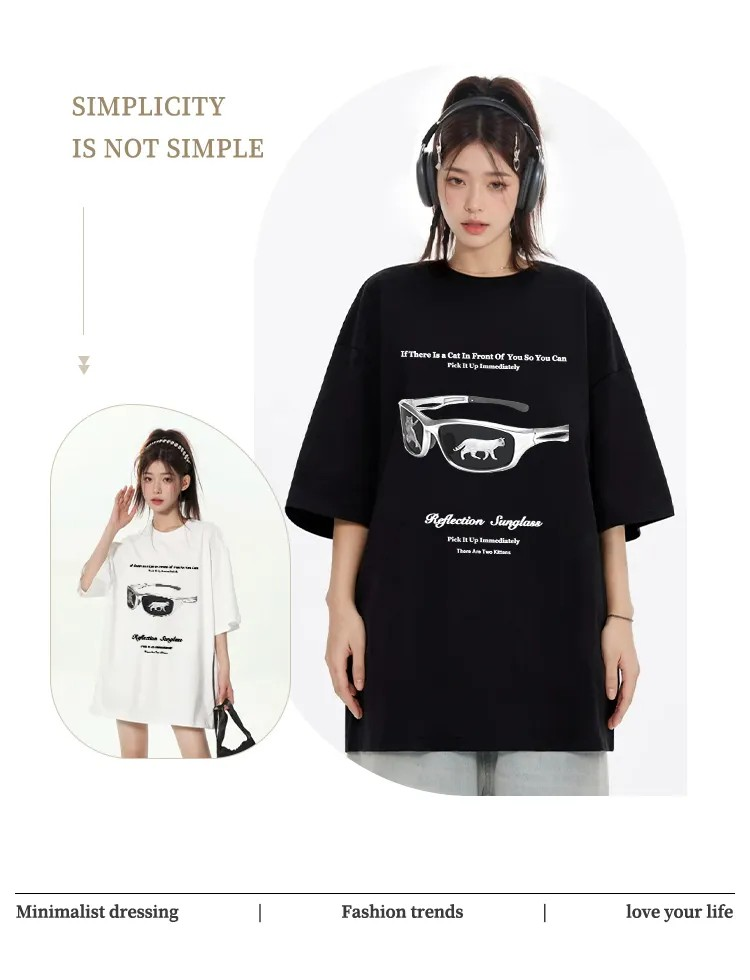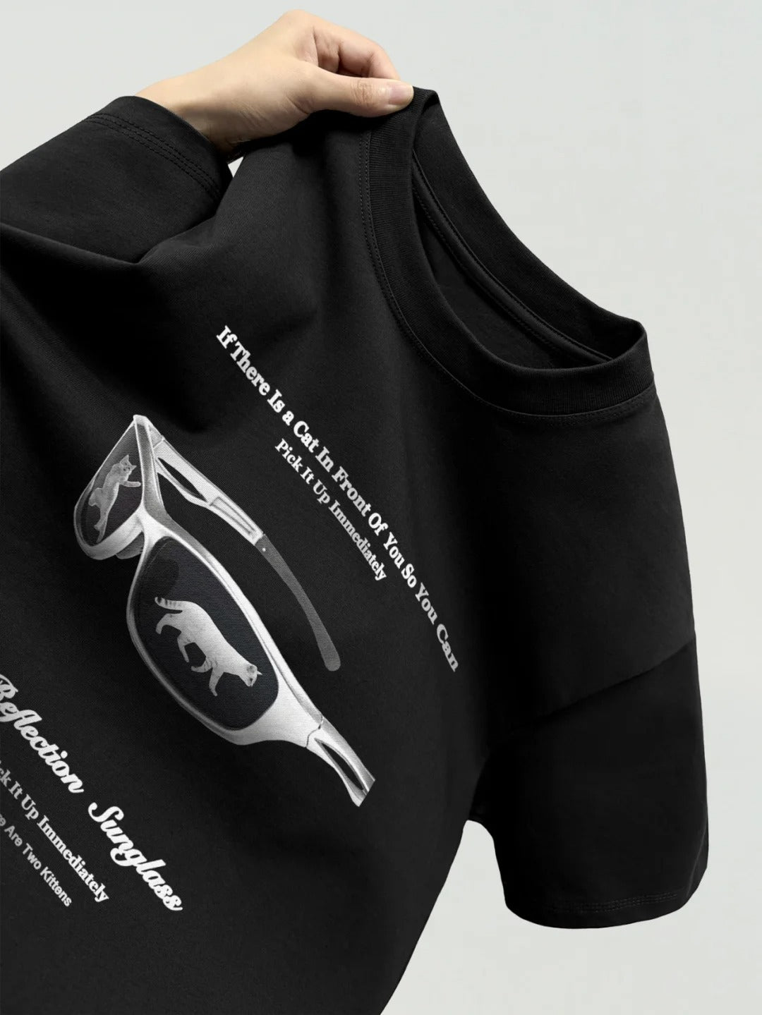 - Featuring a sleek silver sunglasses print with a mirrored cat reflection — unique, futuristic, and fun.