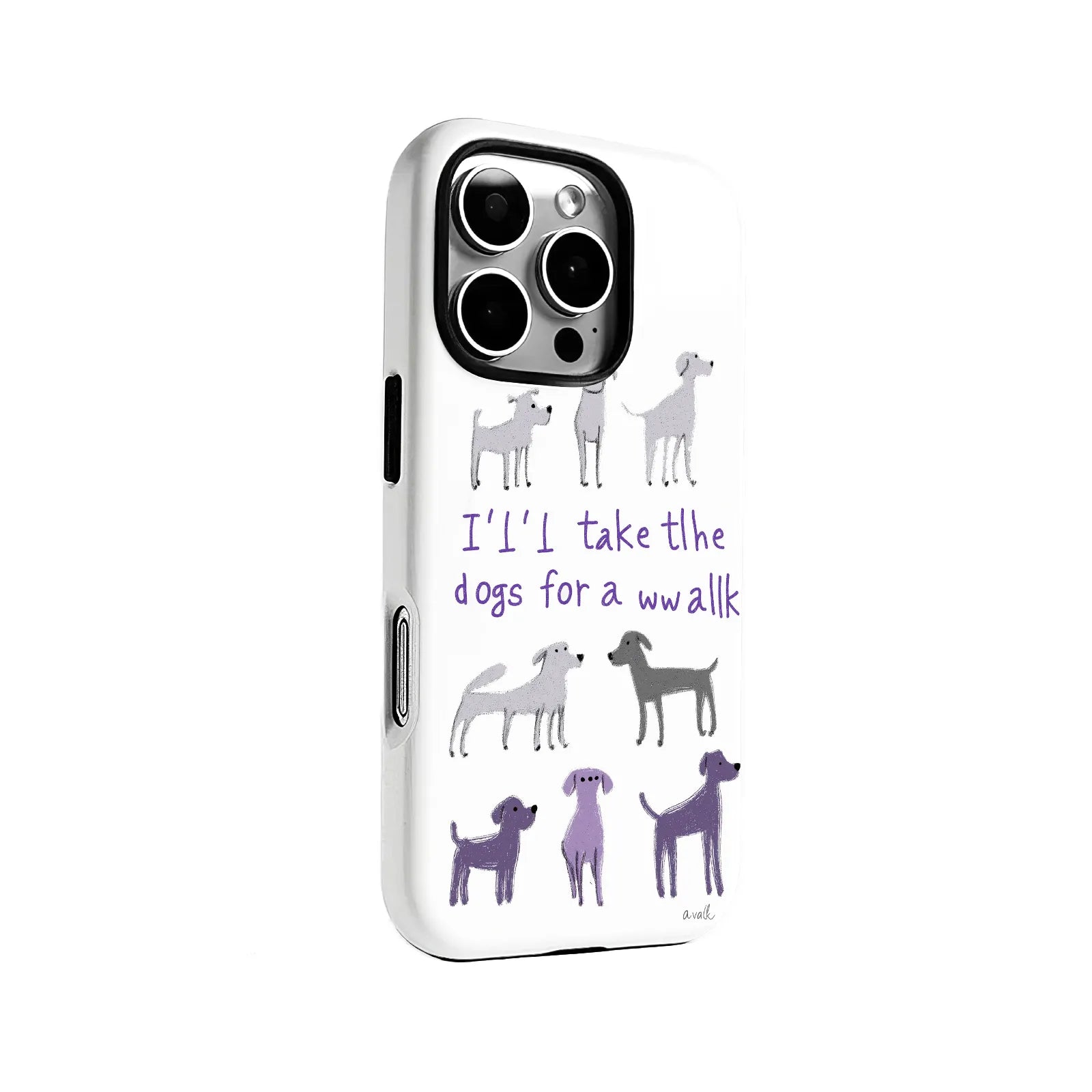 - The text “I’ll take the dogs for a wwalk” adds a humorous, lighthearted touch.