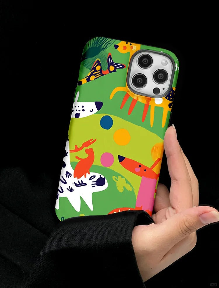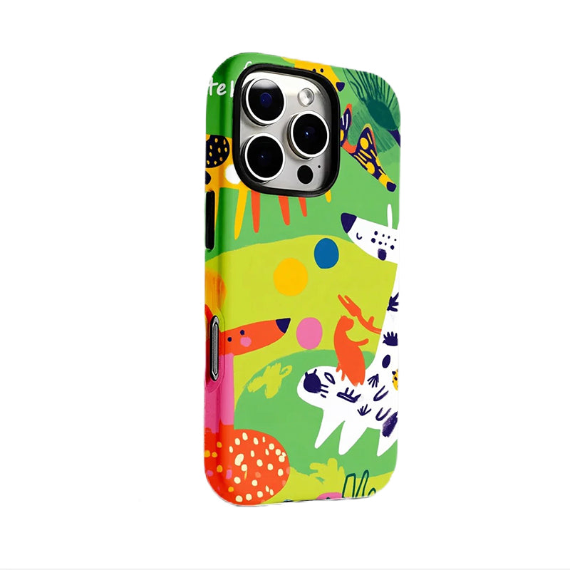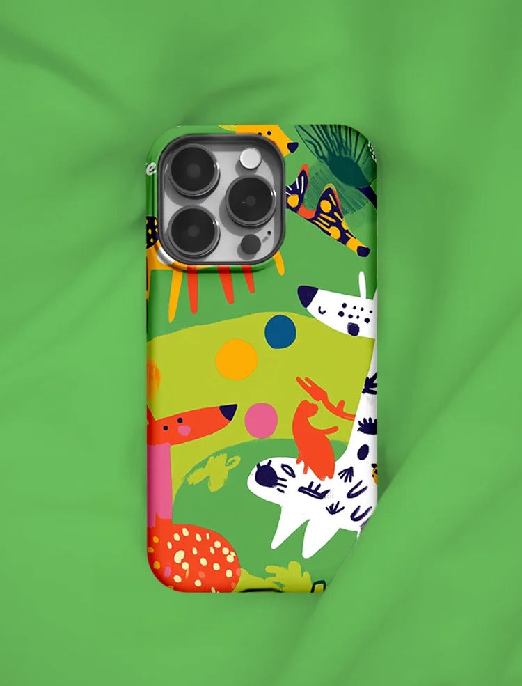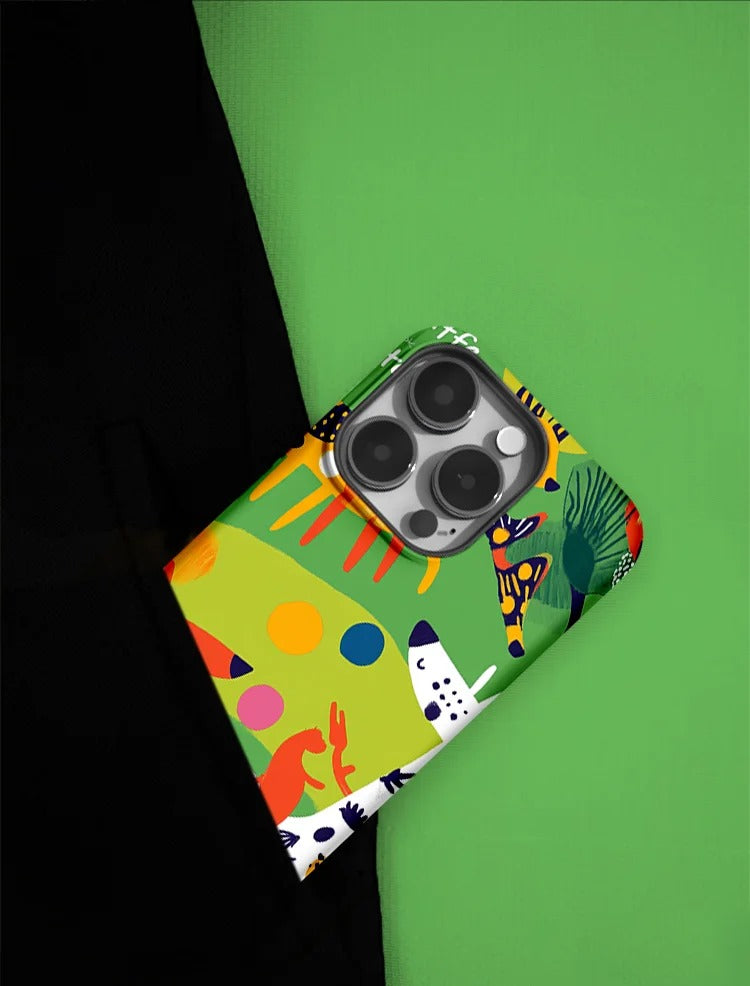 - Bursting with personality, this case features colorful abstract animals in a vibrant fantasy forest—perfect for dreamers and creatives.