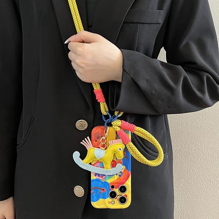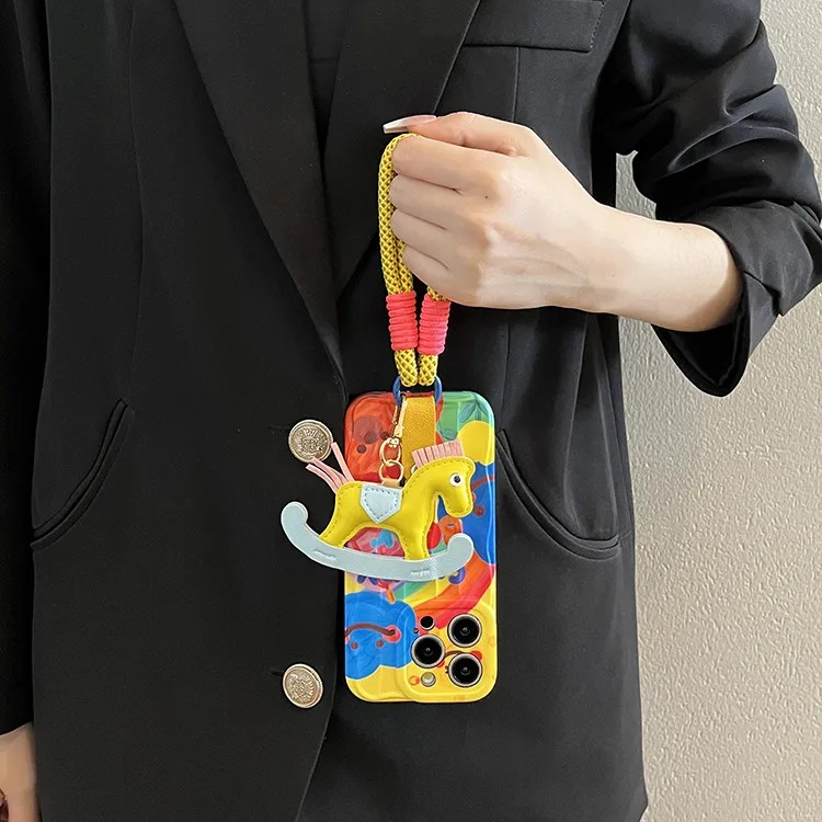 - Detachable yellow rocking horse keychain adds a fun, nostalgic touch to your phone or bag.